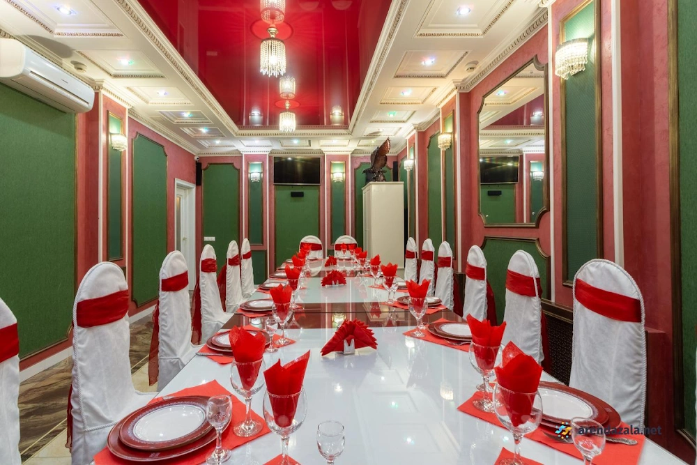 Уютный зал с изысканной атмосферой приглашает насладиться шедеврами национальной и европейской кухни. Вас ожидает безупречный сервис от внимательных официантов и живая музыка в исполнении талантливого DJ. Высококлассный шеф-повар готовит блюда из свежих продуктов, а профессиональные кондитеры создают потрясающие десерты. Просторный зал с ухоженным интерьером идеально подходит для торжественных мероприятий и семейных праздников. Здесь царит гостеприимная атмосфера, обеспечивающая незабываемый вечер в компании близких.